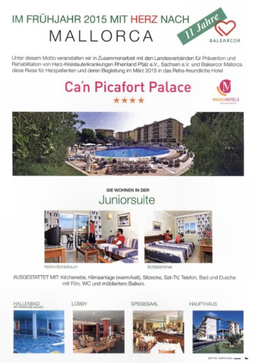 Unter diesem Motto veranstaltet der Landesverband für Prävention und Rehabilitation von Herz-Kreislauferkrankungen Rheinland-Pfalz e.V. und Baleacor Mallorca diese Reise für Herzpatienten und deren Begleitung im April 2020 in das Reha-freundliche Hotel Ca'n Picafort Palace ****